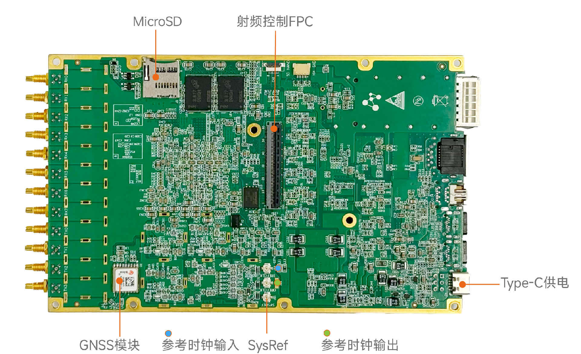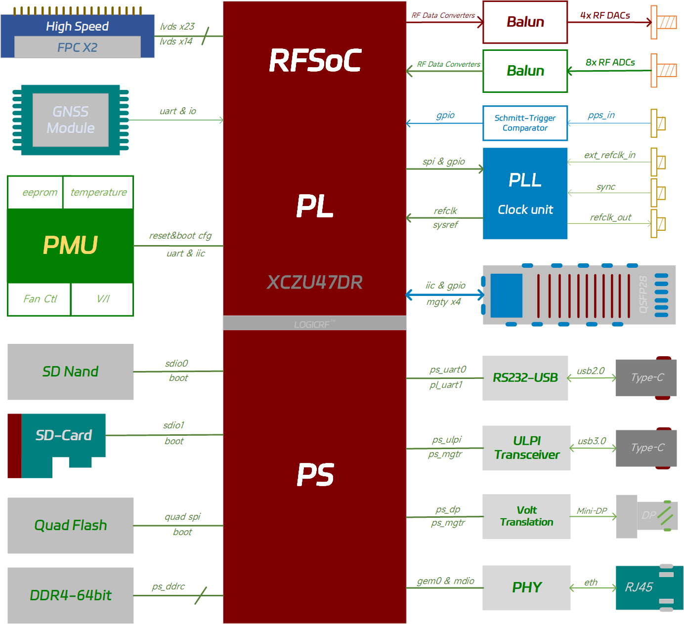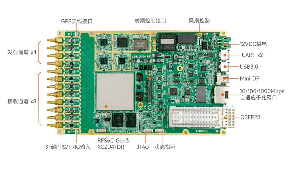 - 14-bit 8x 5GSPS RF ADCs SSMC/SMP ports